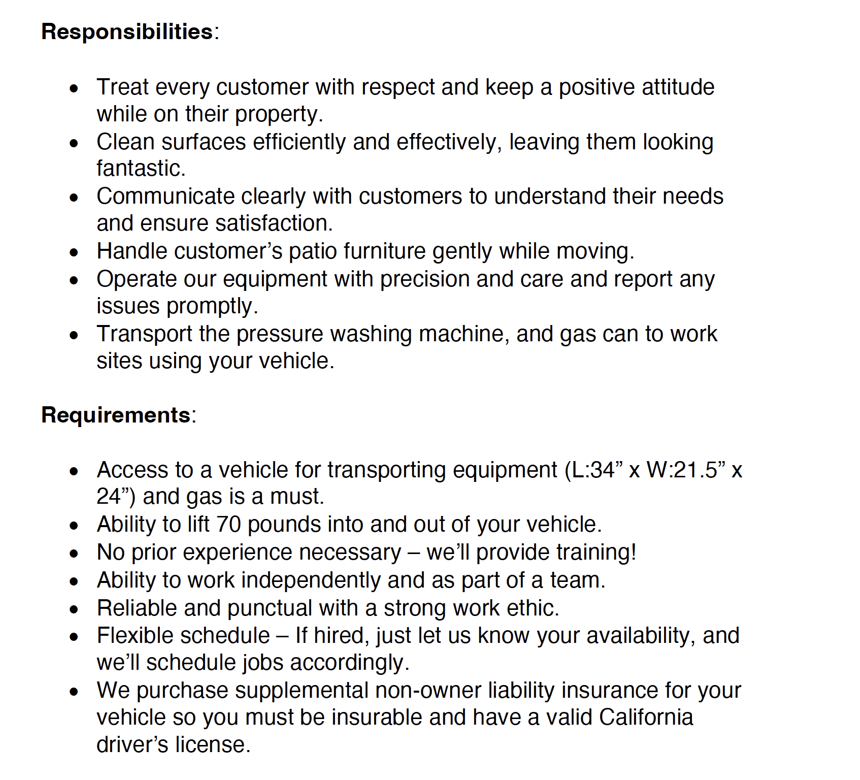 If you’re a teenager looking for a summer job that offers flexibility and the opportunity to earn some money for that new car or big trip, apply now to join our team as a summer pressure washer operator! We’re hiring pressure washer operators to join our team at Katie’s. As a pressure washer operator, you’ll be responsible for using our equipment to clean driveways, patios and outdoor furniture, providing top-notch service to our clients. If hired, simply let us know the days you’re available to work, and we’ll take care of the rest.